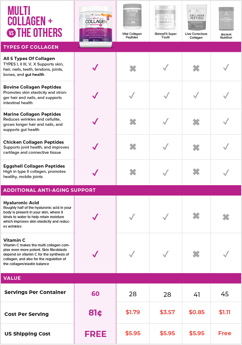 This is a common question and it’s merely a hoax and marketing ploy created by companies who sell collagen protein that only has 2 types. To get a collagen protein with 5 types of collagen, you need to use multiple sources, and these multiple sources can get very expensive when it comes to manufacturing, which is why they stick to bovine peptides that contain just 2 types. For example, collagen peptides from eggshell are very hard to find and are very expensive to have in our product. We do it because they are an EXCELLENT source of type 2 collagen, which is incredible for joint health and is backed by many studies with humans. Other companies DON’T DO IT because it costs money. As for the question that it dilutes the formula, giving you less of the others, let’s use type 2 collagen again. Type 2 collagen in research has been shown to improve joint health with as little as 40mg of it per day. Bovine collagen containing types 1 & 3 collagen requires just 5g daily to be beneficial according to research. Our 7.8g blend has you covered. So moral of the story: we use 5 types because it works better and it’s scientifically more rounded. Even though it costs more, we believe in having a truly amazing product and we know we’ve done that given the feedback on our collagen. And for those types of review articles, just understand you gotta "pay to play." Also, it's strange how when you see that review the #1 brand's ads are in your feed afterwards... right?