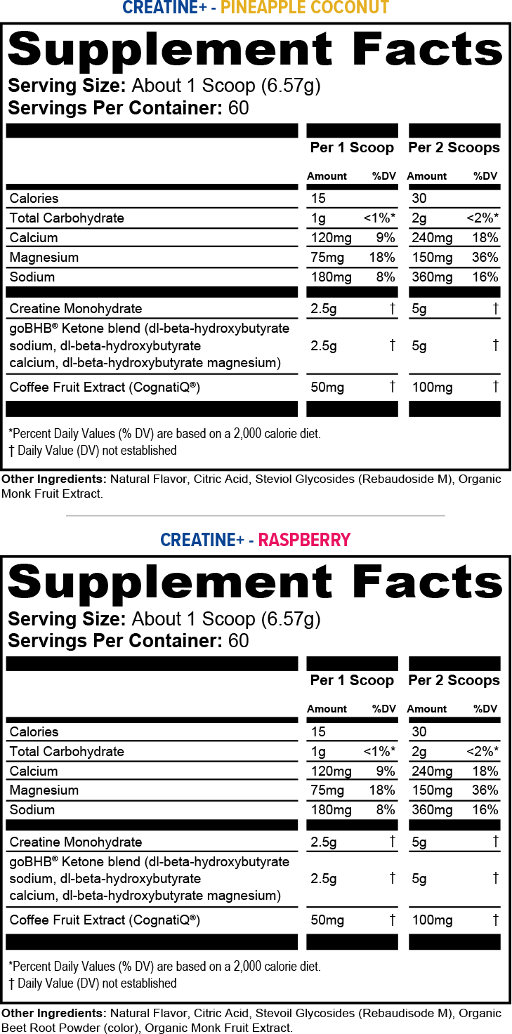 Each scoop delivers 2.5g of creatine monohydrate, goBHB®, and CognatiQ®, working together to support lean muscle, boost endurance, and enhance mental clarity. This unique combination fuels both your body and mind, helping you power through tough workouts and stay focused throughout your day.