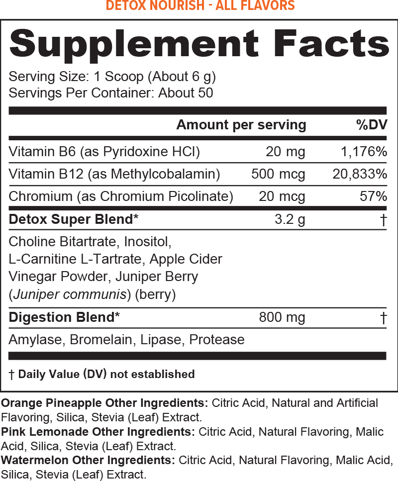 Unlike traditional detox products, Detox Nourish is formulated without milk thistle or turmeric, making it an easy, everyday option for anyone seeking to support digestion and naturally reduce bloating. Feel good, look lighter, and embrace a healthier, more balanced you with Detox Nourish.