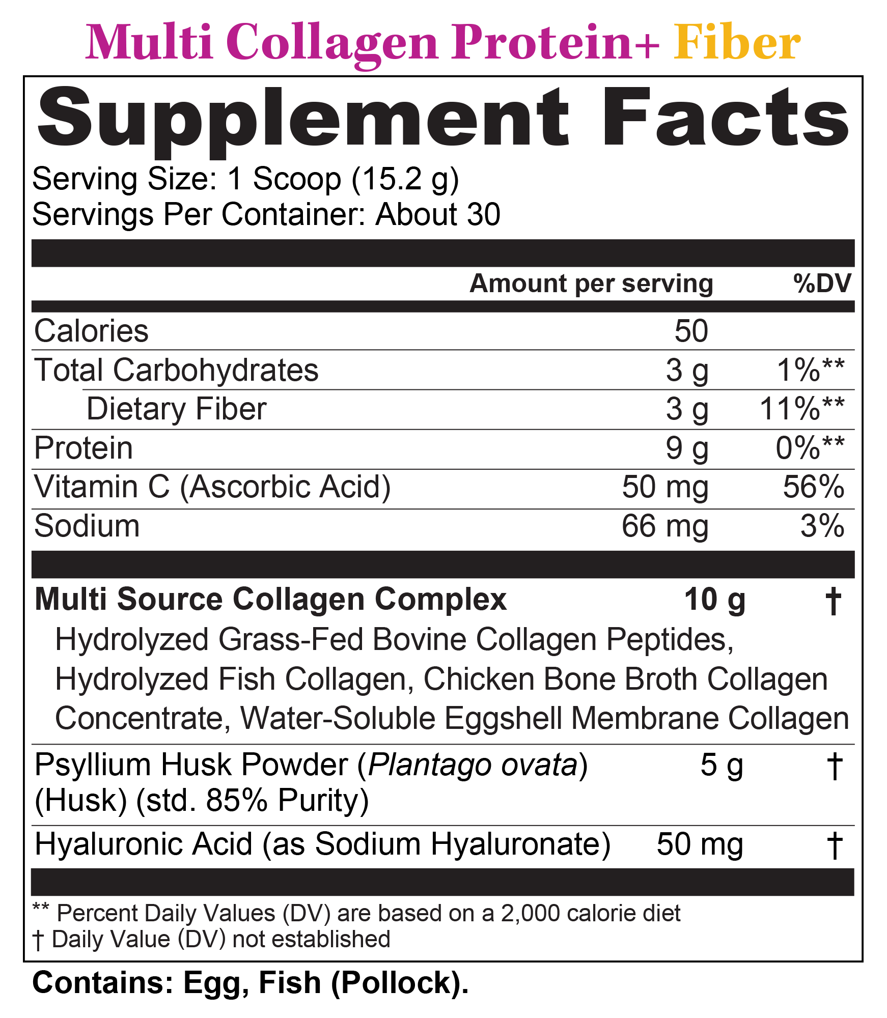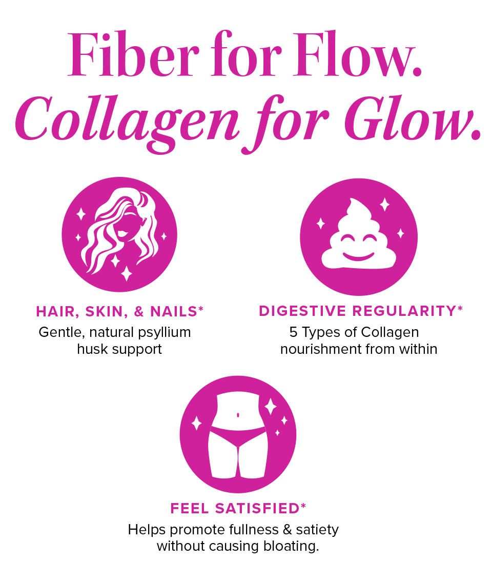 Collagen supports beauty and joint health, while fiber promotes regularity and fullness. Together, they deliver total-body wellness.